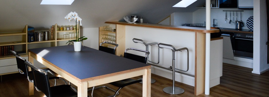 Unsere neue Ferienwohnung befindet sich im Dachgeschoß. Sie bietet auf 90qm Platz für 2 bis 4 Personen und hat 2 Balkone mit herrlichem Bergblick.