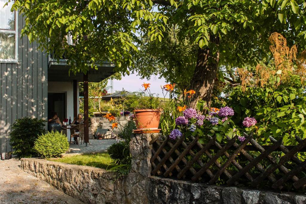 Auf den beiden Terrassen, eine zurückgezogen am Haus, die andere mit Bergblick ein paar Stufen höher, ausgestattet mit Grill, Relax-Liegen, Gartenmöbeln und Sonnenschirm können Sie sich wohlfühlen.